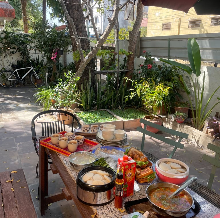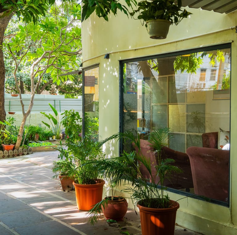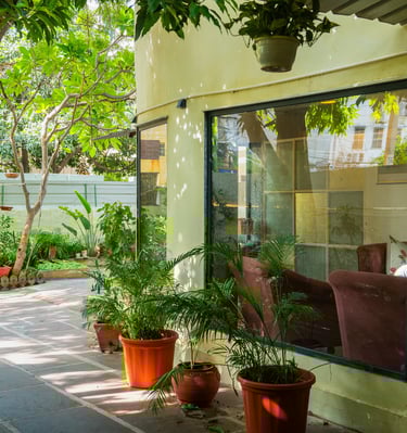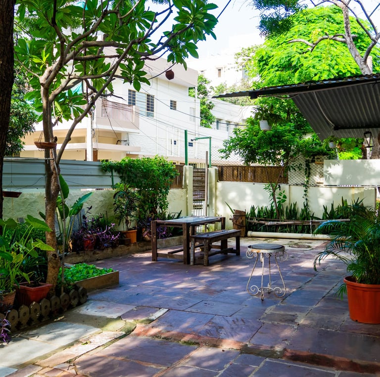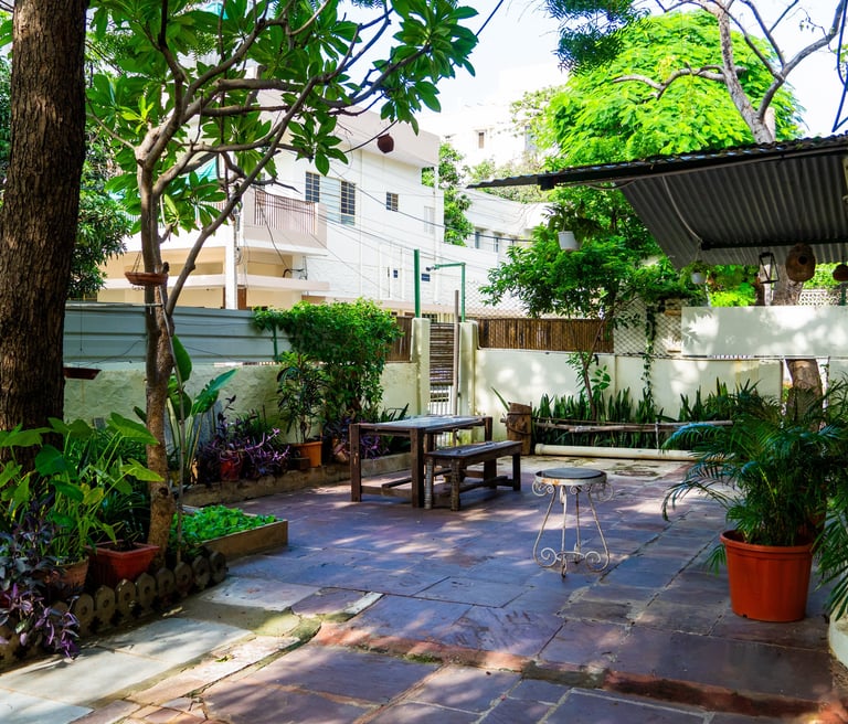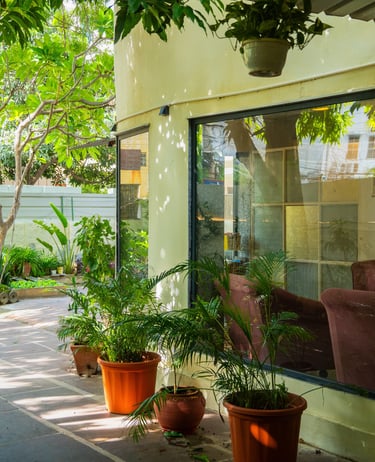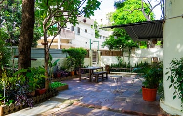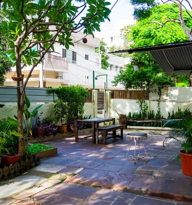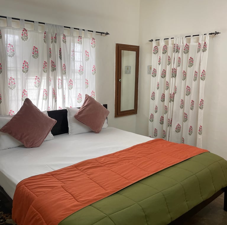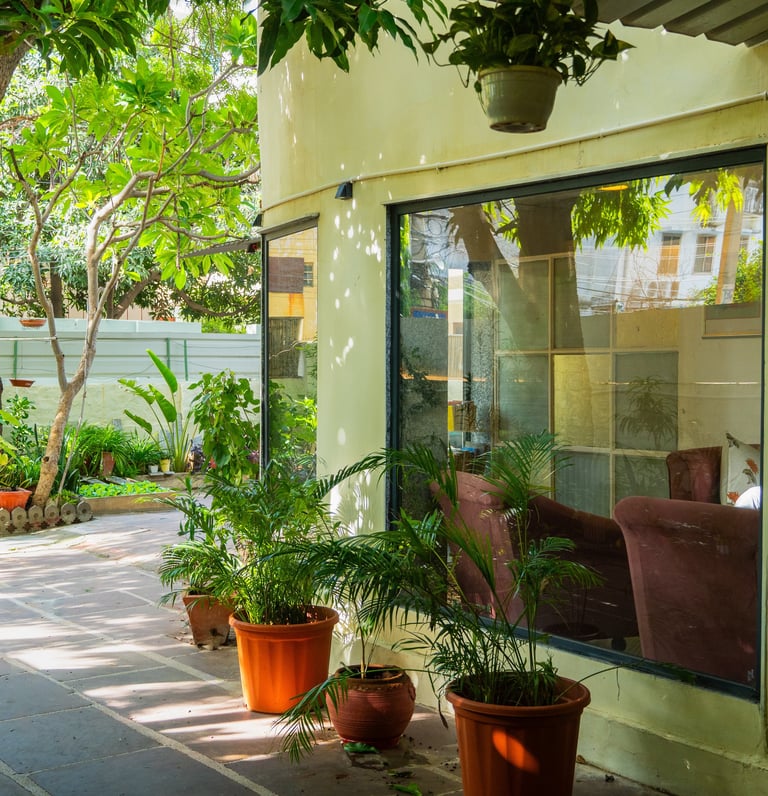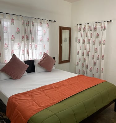 The house stands as it was originally built in the 60s with choona (lime) and pathar (stones). The house was the vision of Ms. Lata, a nature and animal lover who was also a singer at the time. Since its construction, the house has remained largely unchanged, preserving the original design and materials. Every stone and every arch is a testament to the grandeur of the past.